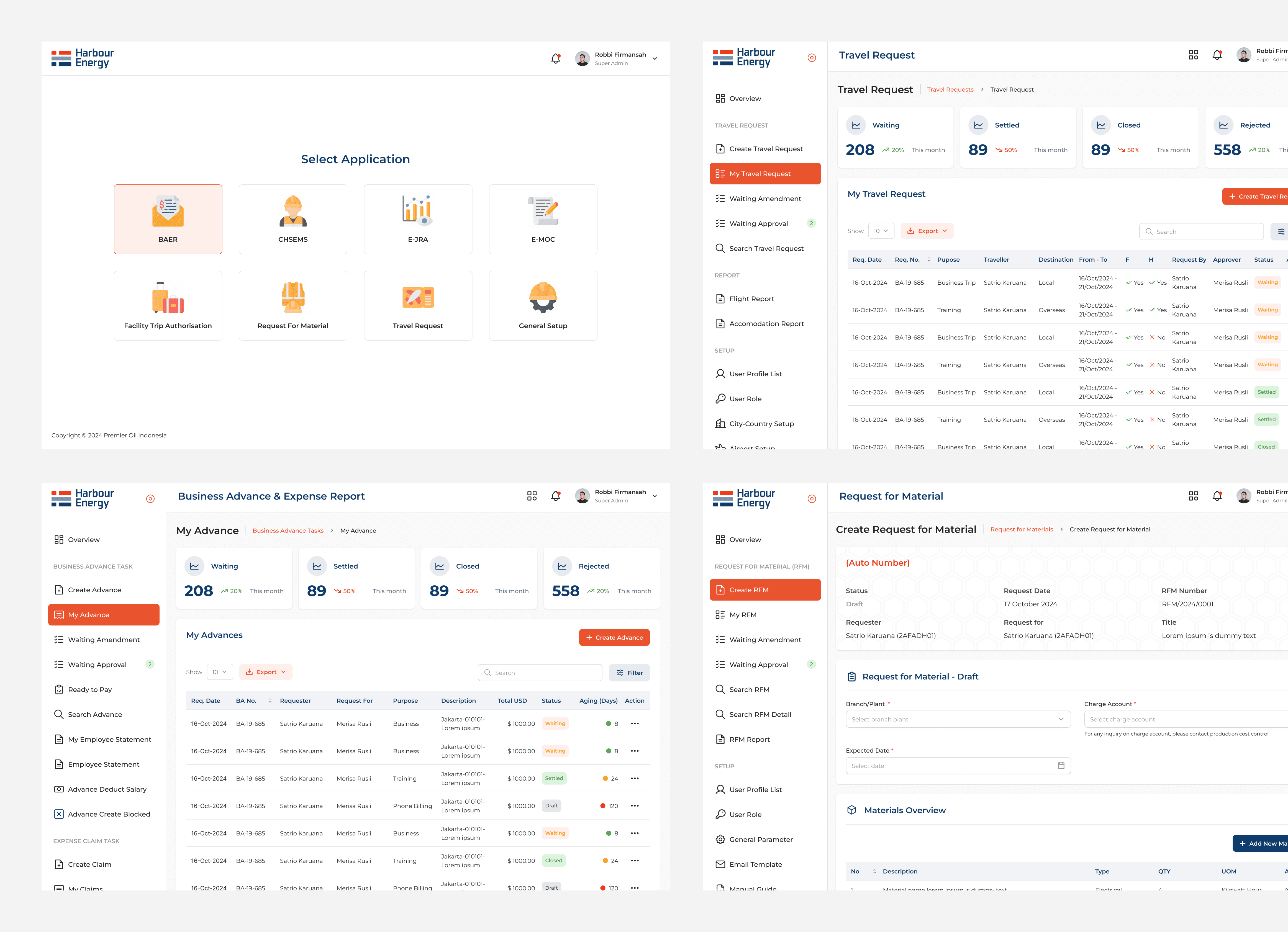 When I first joined this project, Harbour Energy Indonesia had nine different web applications used across various divisions. However, a recurring issue emerged in every user conversation: inconsistent design and workflow. Each application was developed by a different vendor, resulting in a lack of uniformity in both appearance and user experience. As a result, users often felt confused and struggled to complete their tasks efficiently.