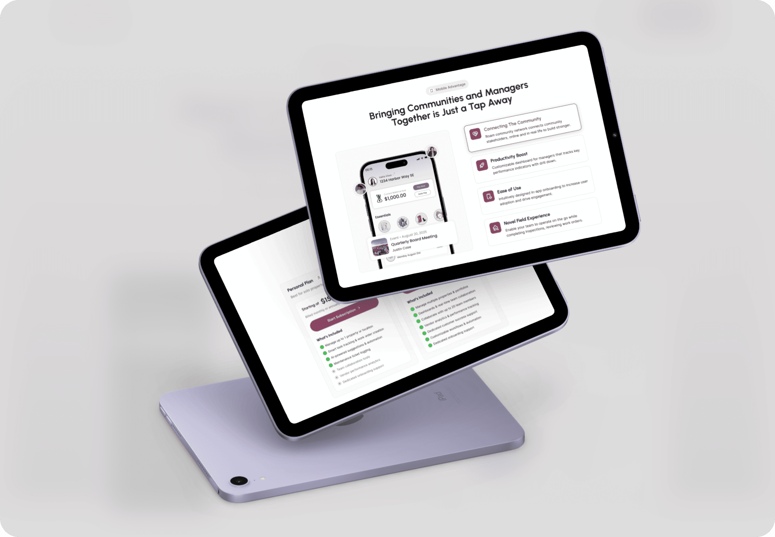 We started by digging into the people Roamstay serves: HOA board members, property managers, and residents. Through interviews and market research, we uncovered key priorities: